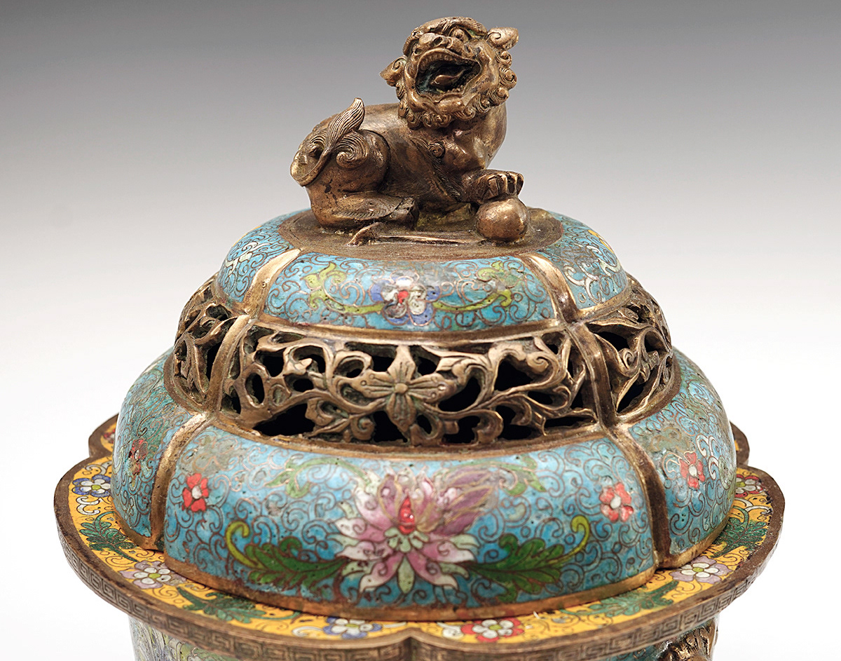 A Bronze and Enamel Cloisonné Lidded Censer