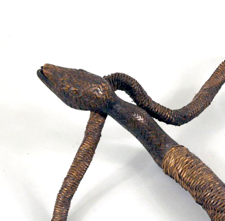 NORTHERN LUZON, IFUGAO PEOPLE, EARLY 20TH CENTURY This charming snake is made from a carved root cane covered with a woven rattan skin. Wood, rattan 20.5 x 22 in. (52.07 x 55.88 cm.) $200